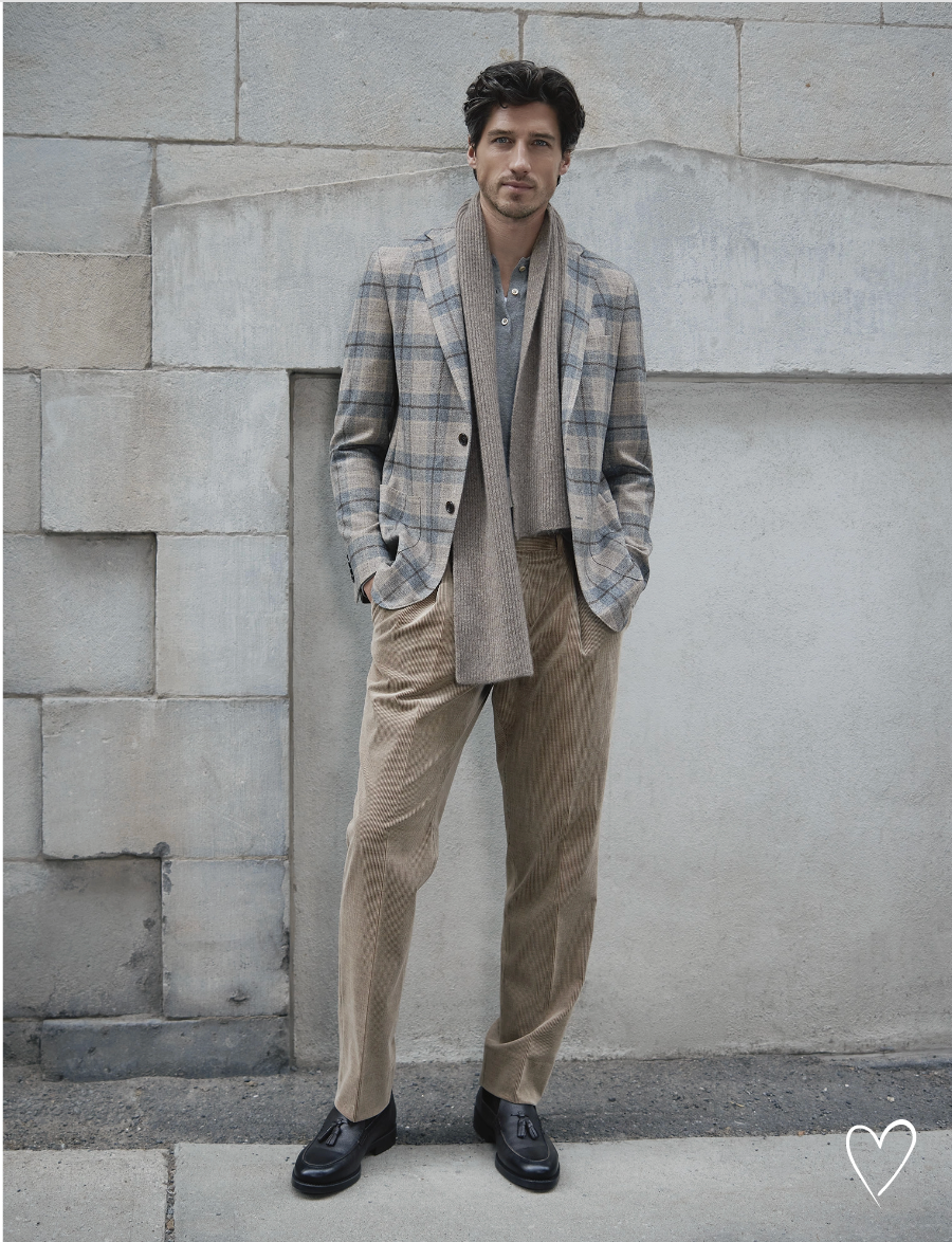 The S-Jacket is the lightest expression of Heritage Gold tailoring. Feather-light and unlined, it highlights the natural beauty of its fabrics while maintaining a relaxed, refined silhouette. Each piece embodies the Heritage Gold commitment to softness, sophistication, and sartorial craft.