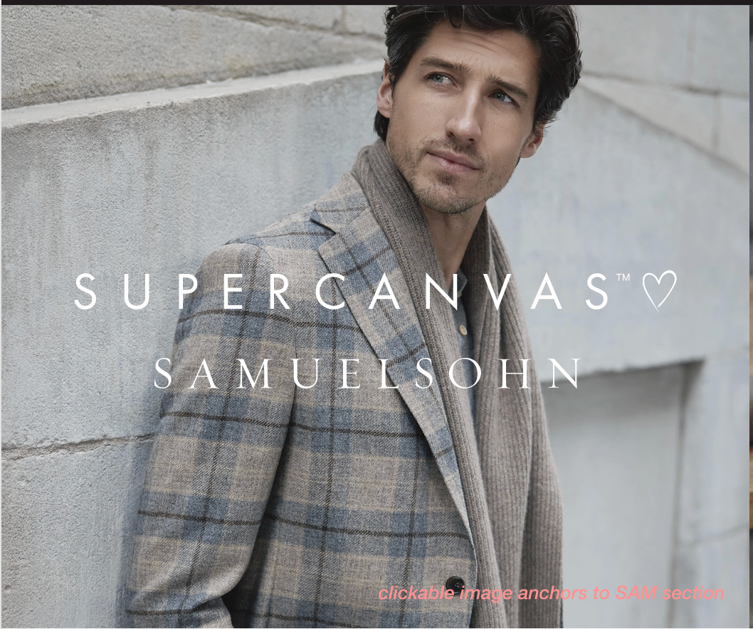 Fabric is at the core of SUPERCANVAS™. Samuelsohn works directly with mills in Biella, Italy, with Zegna as a cornerstone partner. These fabrics, woven with natural stretch, offer a rare combination of lightness, resilience, and sophistication. To suit the varied preferences of today's clients, SUPERCANVAS is available in three distinct fits: